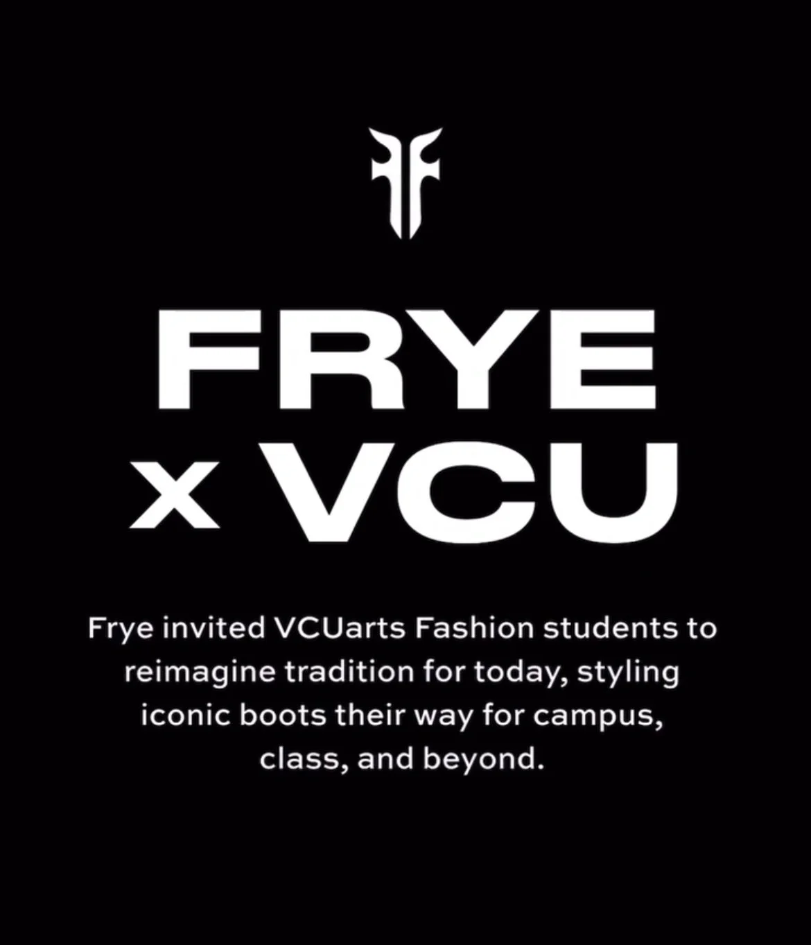 As one of 30 VCUarts Fashion students selected for a collaboration with Frye, I developed a social media campaign proposal that rebranded a classic boot silhouette for a college audience—blending contemporary styling with visual storytelling to rejuvenate brand perception.